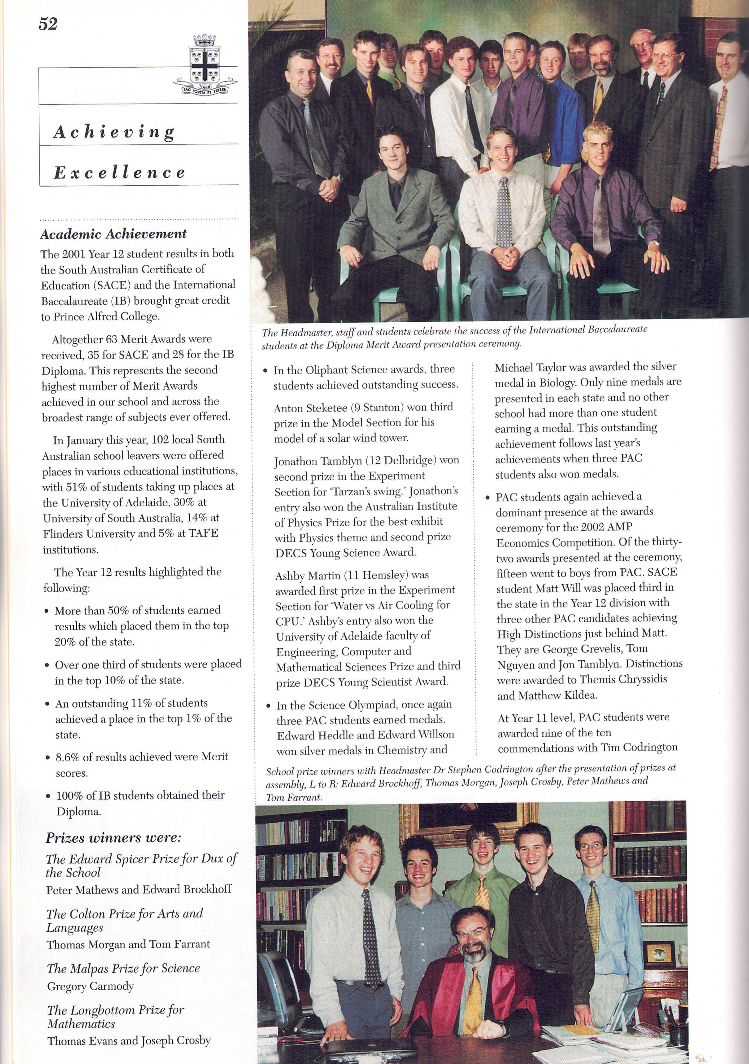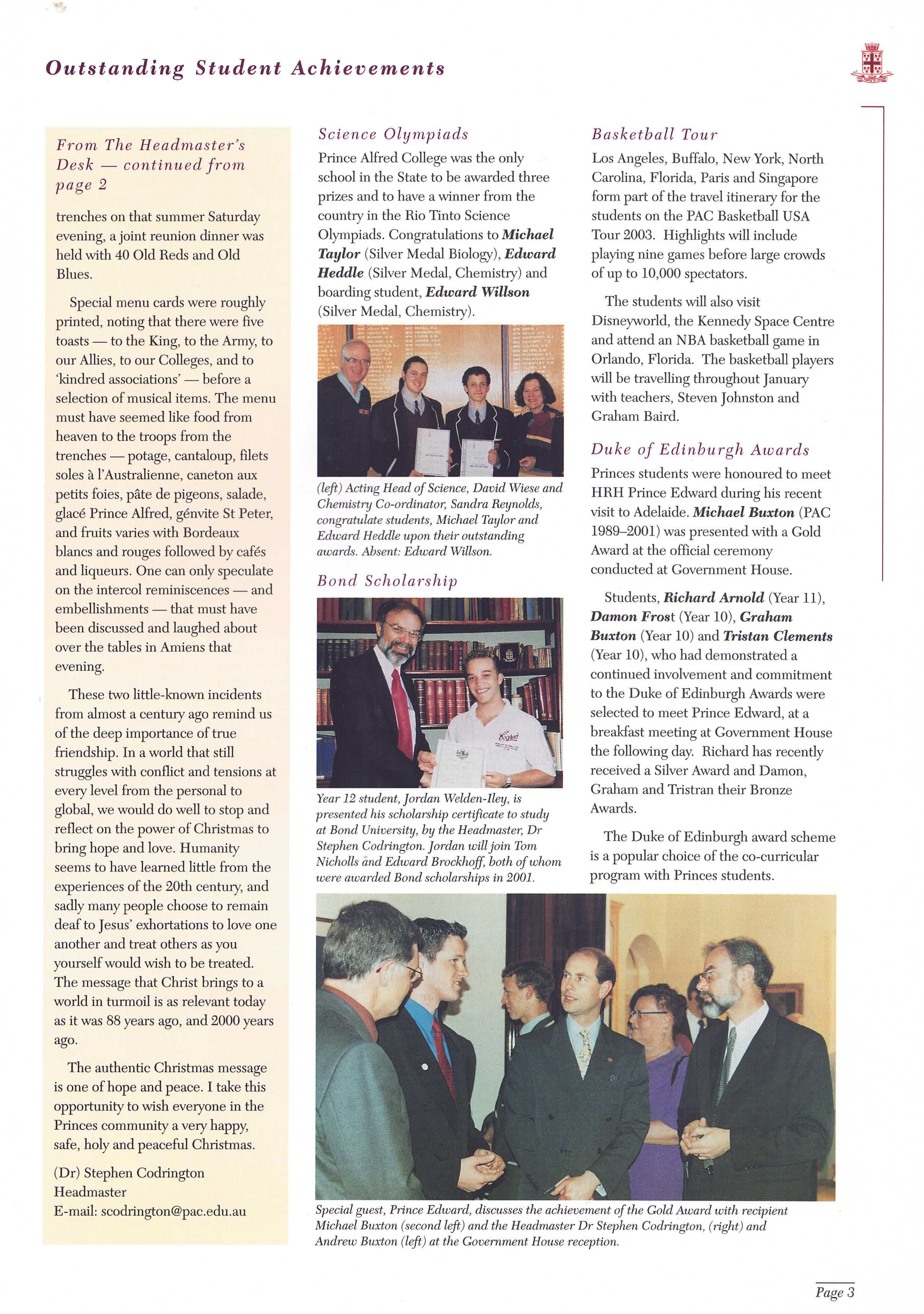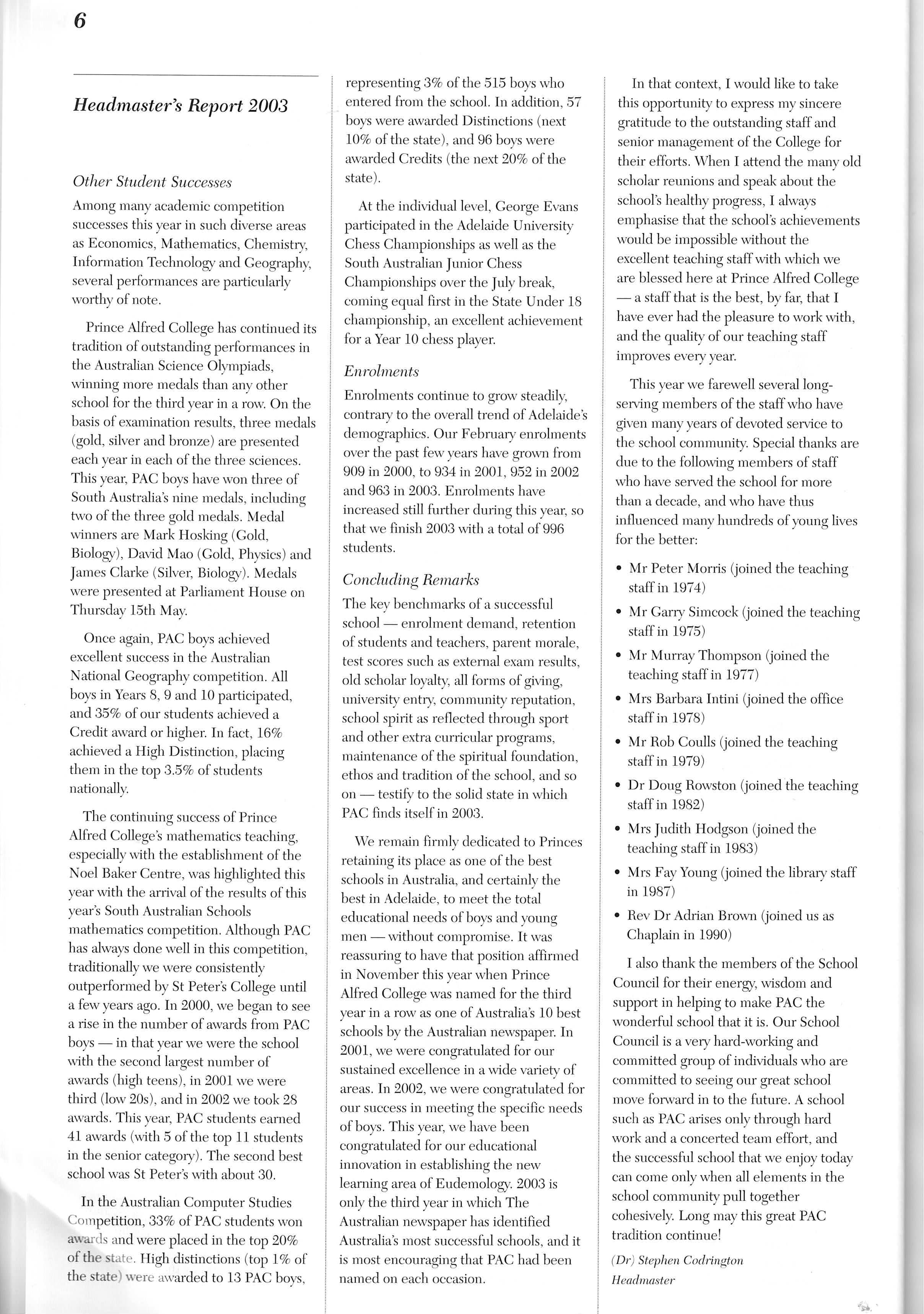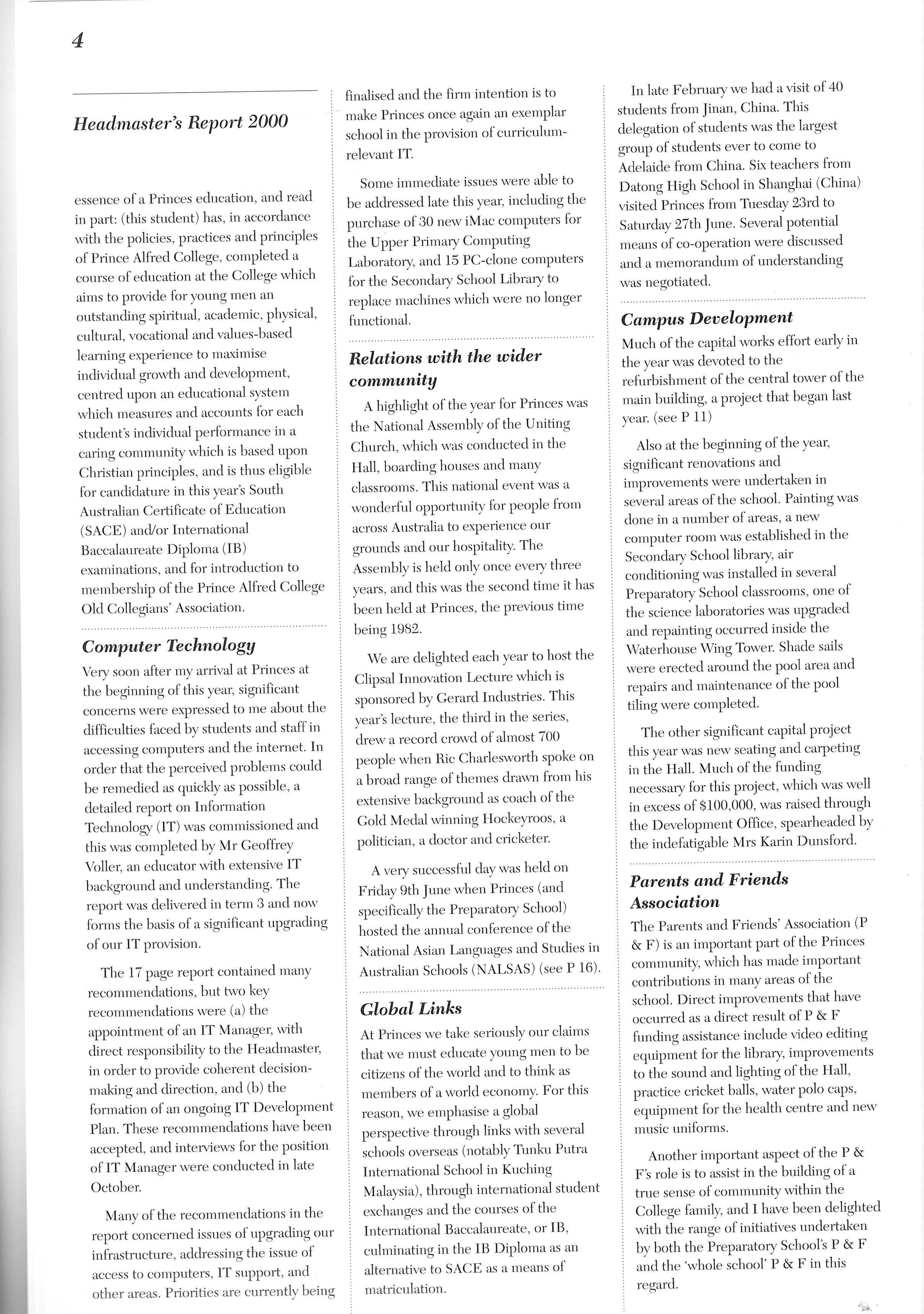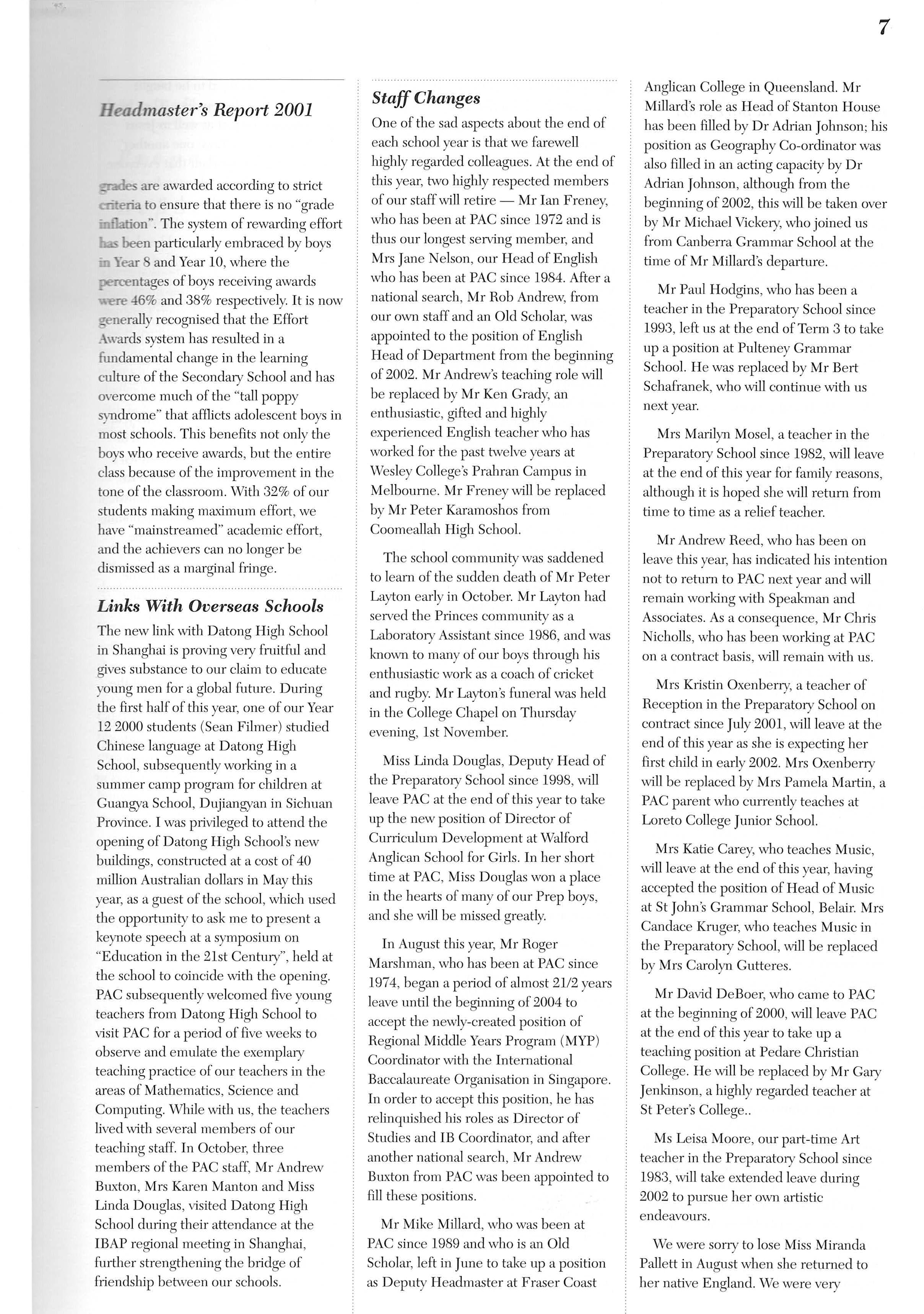 Principal’s Annual Reports, 2000 to 2003 (click to download PDFs)