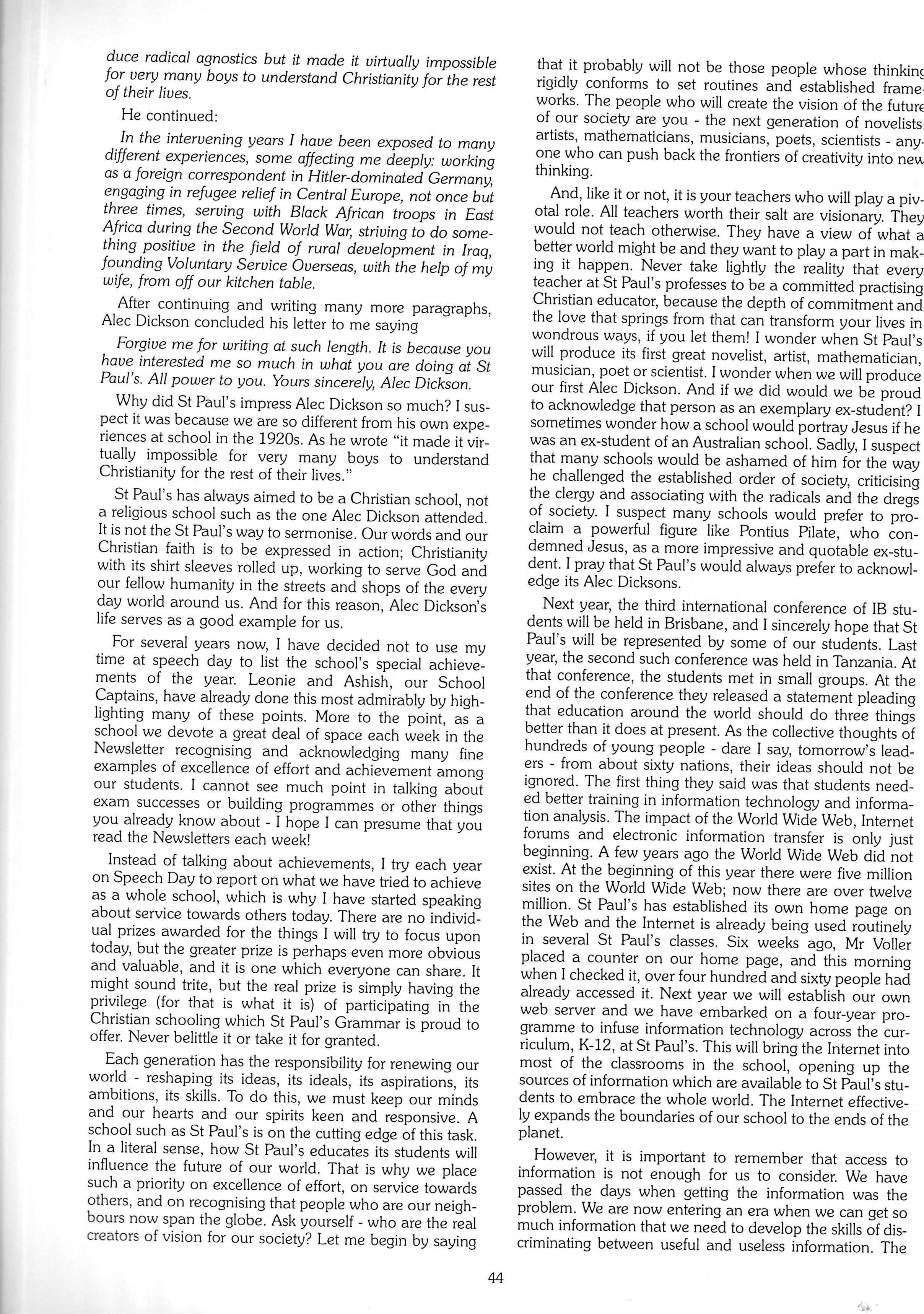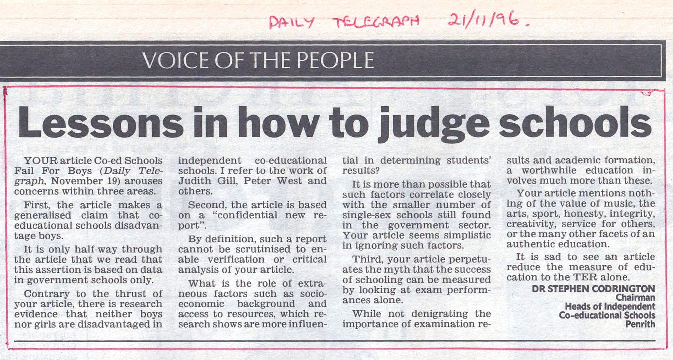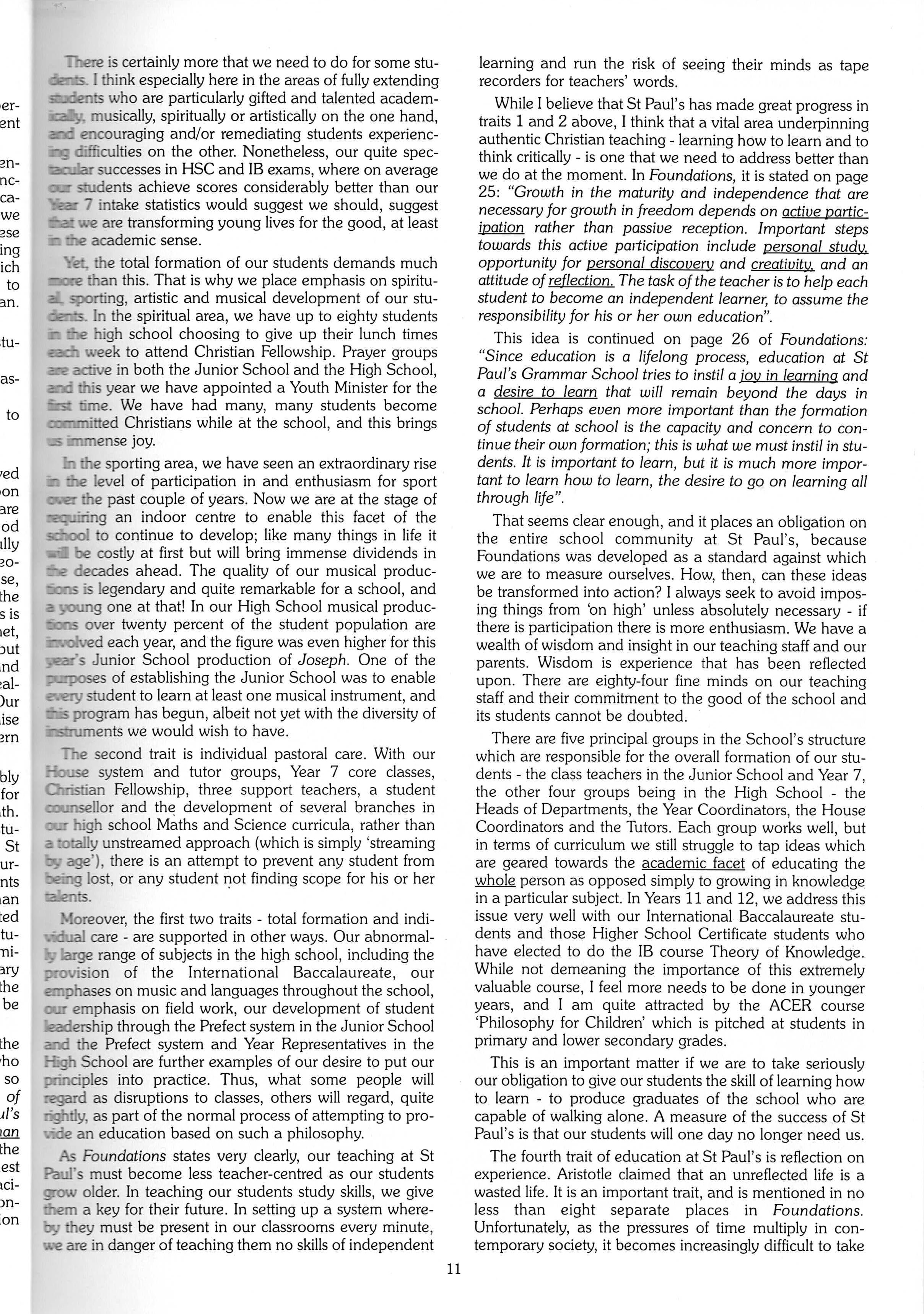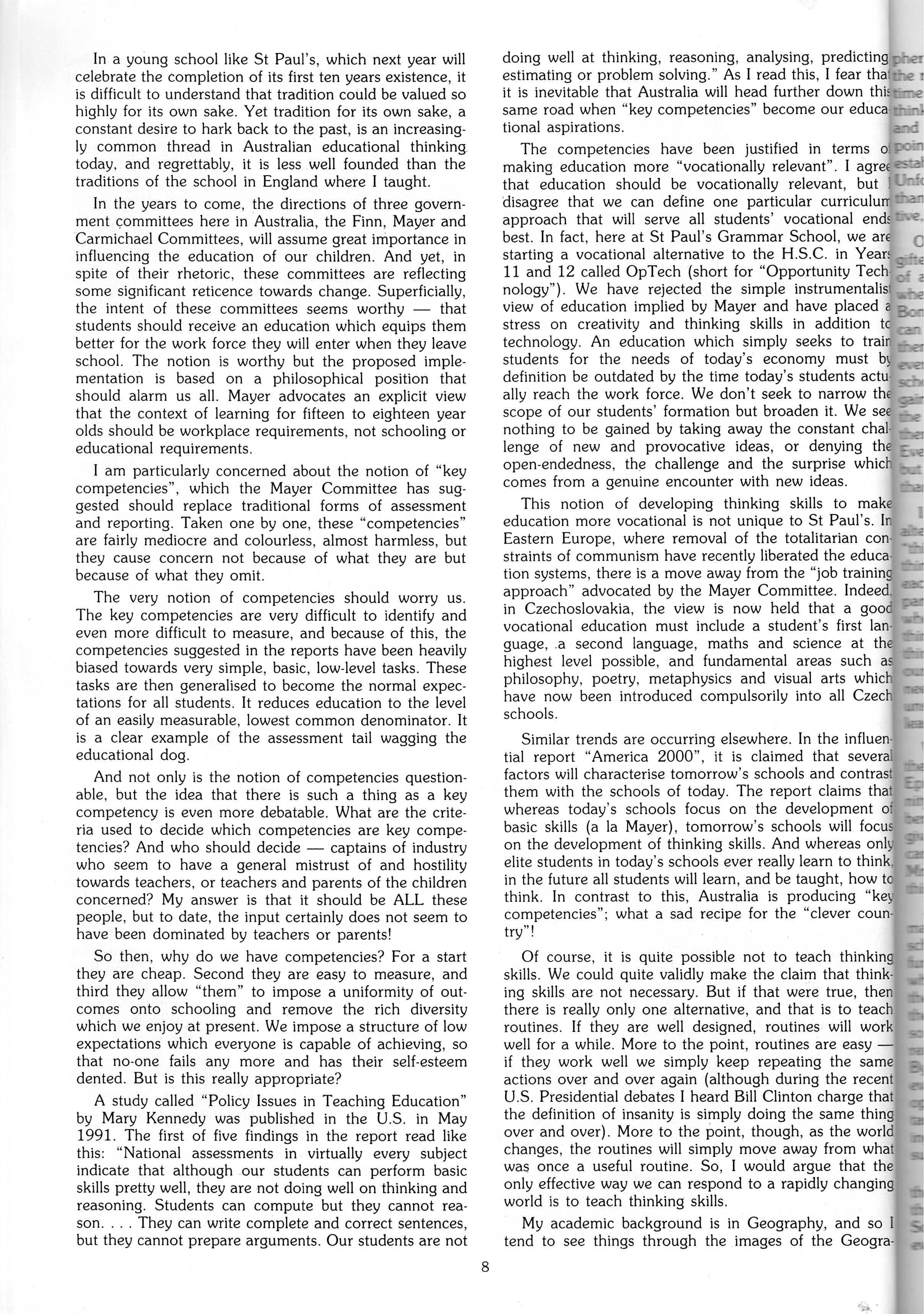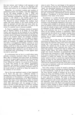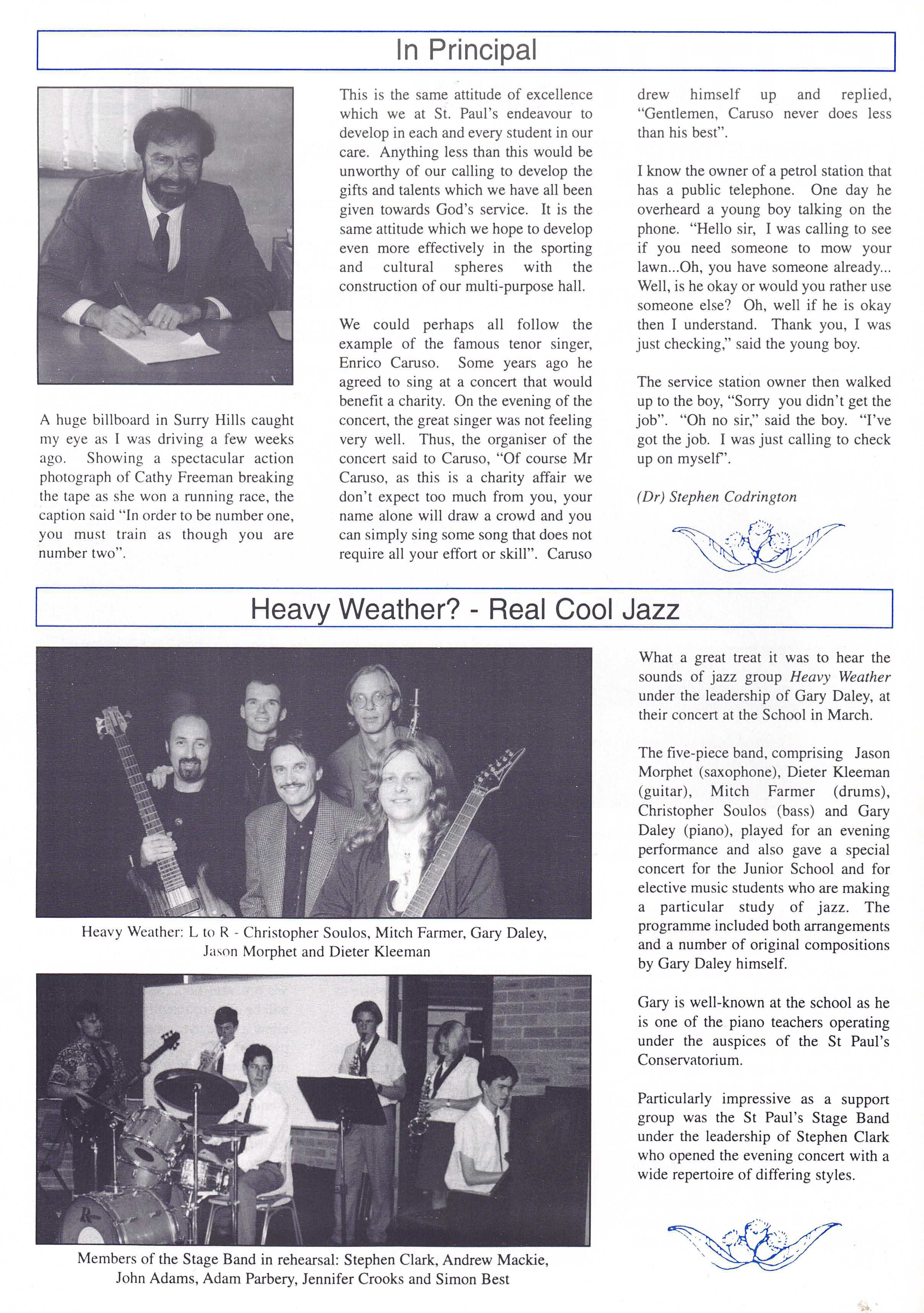 I came to St Paul’s when the school was six years old as its third Principal. Under my eight years of headship, the school expanded from being a high school (Years 7-12) with 500 students into a full K-12 school with over 1200 students with the establishment of a Junior School on the campus (K-6). The Junior School quickly gained an impressive reputation for high standards and innovation, including compulsory teaching of Chinese language from Kindergarten to Year 6. To accommodate the expansion of student numbers, I guided six large building programs, two of which involved innovative and highly acclaimed adobe (mud-brick) construction. I worked to build a strong, cohesive community in the school, including inviting each student to visit my office for an individual chat on their birthday, editing the 10th anniversary book “The First of Many Decades”, and writing the school’s first definitive statement of philosophy and educational principles, the book “Foundations”. I gained membership of the school in several significant peak ‘mainstream’ networking organisations including AHISA and HMC, and worked successfully to make St Paul’s a founding member of HICES. I introduced a Gifted and Talented program that included then-innovative practices including acceleration and vertical streaming. I demonstrated creativity, patience and negotiating skills by successfully negotiating and establishing a joint-venture branch of the school in Harbin (north-east China), a task that involved sorting through a myriad of legal, governmental and regulatory hurdles, as well as demonstrating a deep level of cultural sensitivity. I also introduced the IB Diploma in 1990 – a bravely pioneering step way at the time as the IB was largely unknown in Australia at the time – St Paul’s was only the second IB school in New South Wales and the first in the state to offer examinations in the November session. Internationalism became a key feature of the school under my leadership, supported by his establishment of sister school relationships with schools in China, Japan and Russia. With the support of the School Council, I established the Development Office, bringing back Adrian Lamrock (the School’s Founding Principal) as its first director; Adrian subsequently raised significant sums for capital building projects as well as inaugurating annual school musical productions and starting the regular magazine “Futurum”. Also with the Council’s support, I established annual scholarships, and I played a strong role in the successful local campaign to reverse a government proposal to establish a huge rubbish tip just along the road from the school. Apparently I am also especially remembered for my introduction of a system of student awards for effort that positively transformed the learning ethos of the student body. Throughout my time at St Paul’s, I chose to stay in touch with my students and with my teachers’ daily needs by teaching full regular classes of Geography.